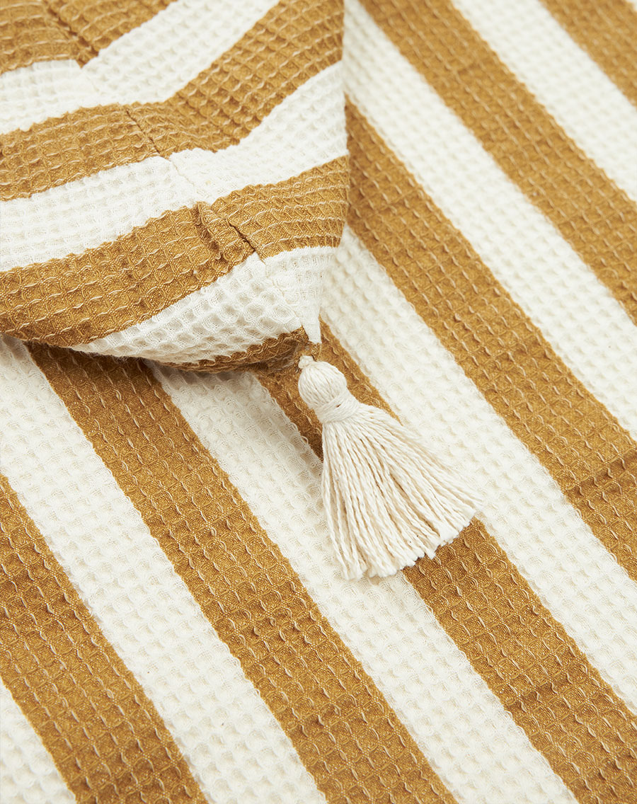 With its pom-pom hood, colourful stripes, and loose fit, the Portofino poncho 1-3Y muslin lining is the perfect way to protect your children from the sun’s rays all summer long. It’s incredibly soft thanks to its washed organic cotton gauze lining.